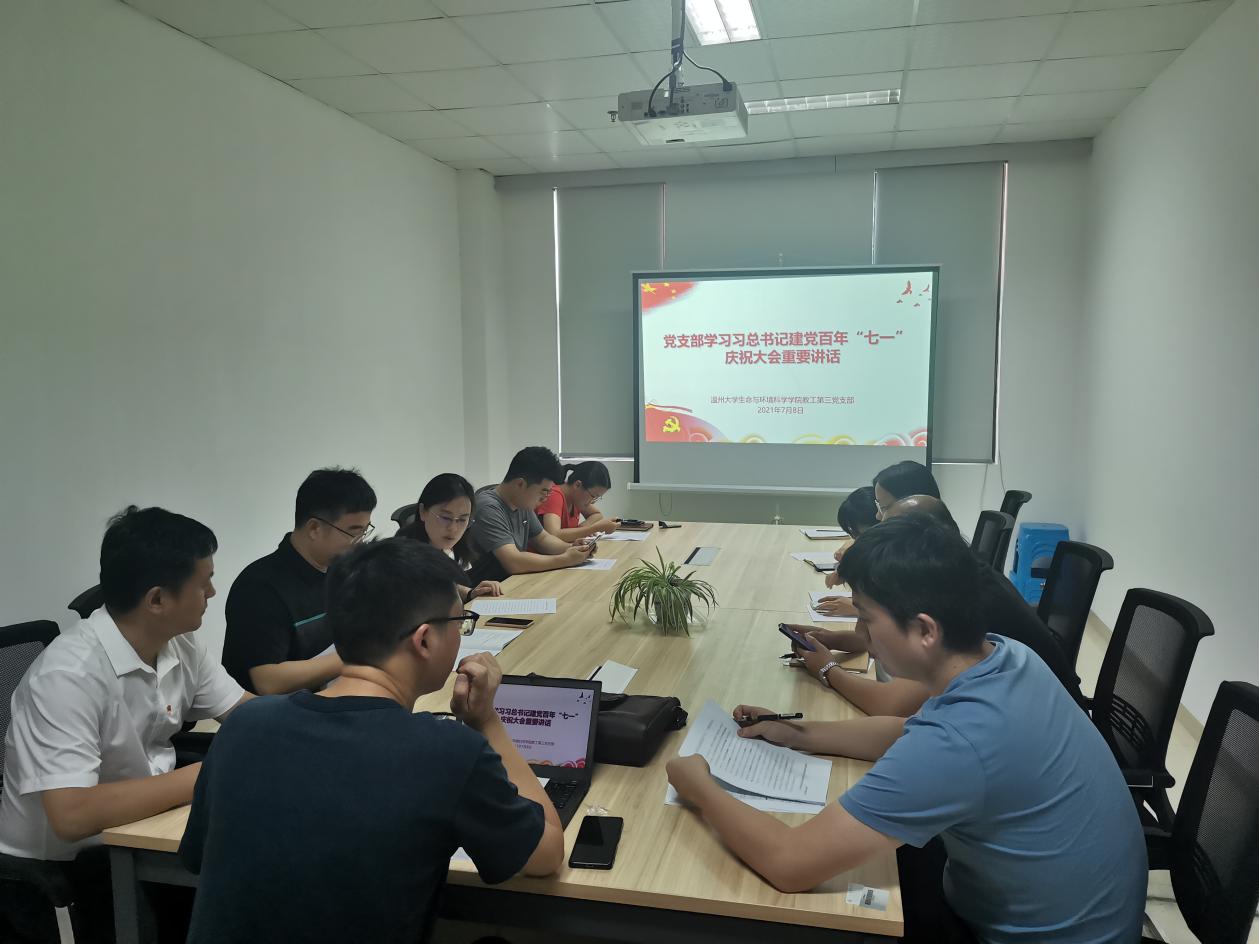 2021年7月8日上午,新葡的京官网教工第三党支部召开全体党员座谈会,深入学习习近平总书记在庆祝中国共产党成立100周年大会上的重要讲话精神,深化党史学习教育。