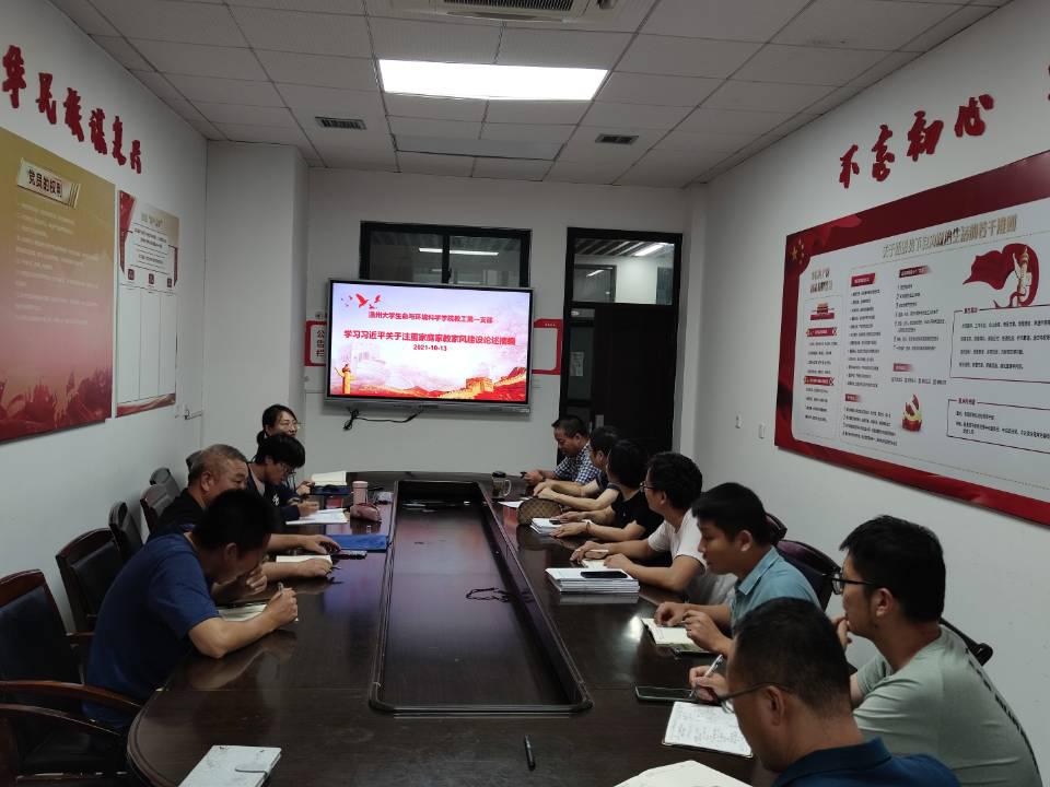 在热烈的讨论会最后,支部书记陈斌斌老师总结到:开展家庭、家风建设有利于弘扬中华优秀的传统美德,践行社会主义核心价值观,弘扬社会正能量。今天我们从老一辈教师和党员那里学到了很多优良家风的传统。比如张永普老师的“自力更生、奋发图强”,林国栋老师的“独立自主、言传身教”,胡仁勇老师的“家庭和睦、注重基础”,应雪萍老师的“积极进取、潜移默化”,以及周化斌老师的“舍小为大,思考教育为啥?”等等,都为我们,特别是我们80后、90后们提供了很好的经验借鉴。这些重要的思想,不仅仅只在我们支部内部学习,我们更应该像总书记号召的那样,动员身边的非党员师生们广泛学习,积极参与到家庭文明建设,把实现个人梦、家庭梦融入国家梦、民族梦之中,推动社会主义核心价值观在家庭落地生根,积极助力形成社会主义家庭文明新风尚!