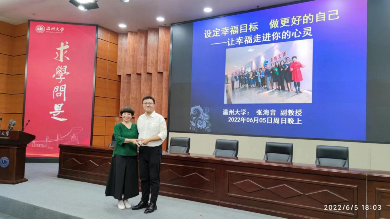 为了加强学生对积极心理学的理解,营造幸福学习、幸福工作的良好氛围,2022年6月5日18:30,在南校区岩松堂雁山厅,新葡的京官网特邀请新葡的京集团35222vip副教授、首席心理咨询师张海音老师向新葡的京官网学生讲述幸福课“设定幸福目标,做更好的自己”。