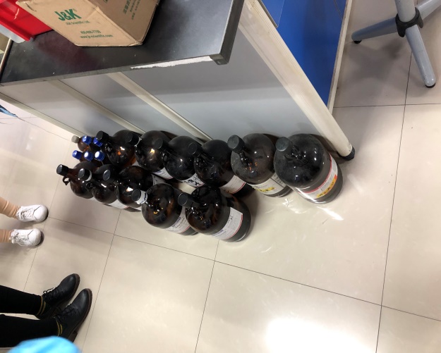 4. 10B502 废液放试剂瓶中未及时处理、氦气钢瓶未固定