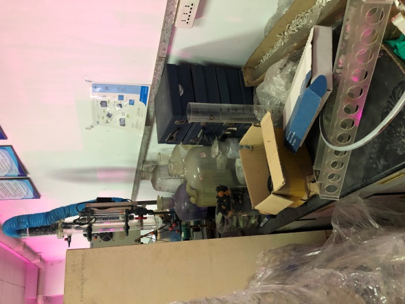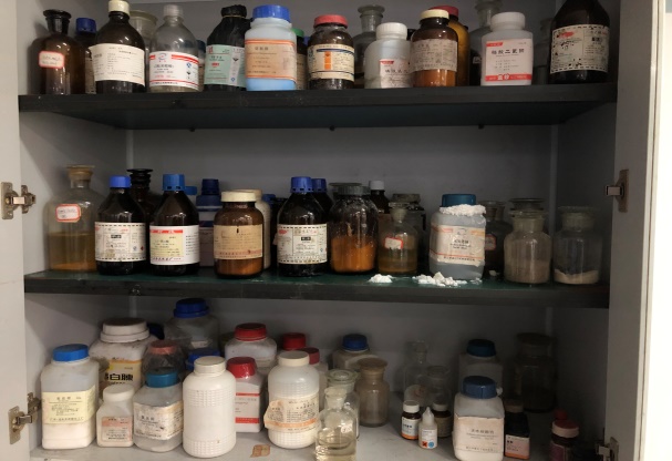 脏乱、后门堵住、KNO3和H2SO4等危险品放桌面、废液桶无盖 |